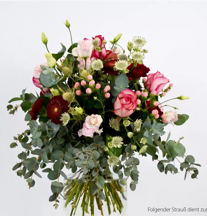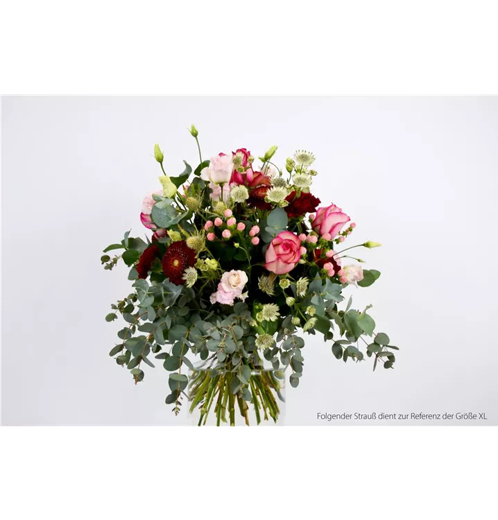 Auf dem Foto sehen Sie die XXL-Variante. Blumen sind Naturprodukte, daher können Farbe, Form und Beschaffenheit vom hier abgebildeten Strauß abweichen. Bei nicht verfügbaren Blumen ersetzen wir diese durch gleichwertige Alternativen. Gerne können Sie uns vorab kontaktieren, falls Sie spezielle Wünsche haben. Herzlichen Dank für Ihr Verständnis.