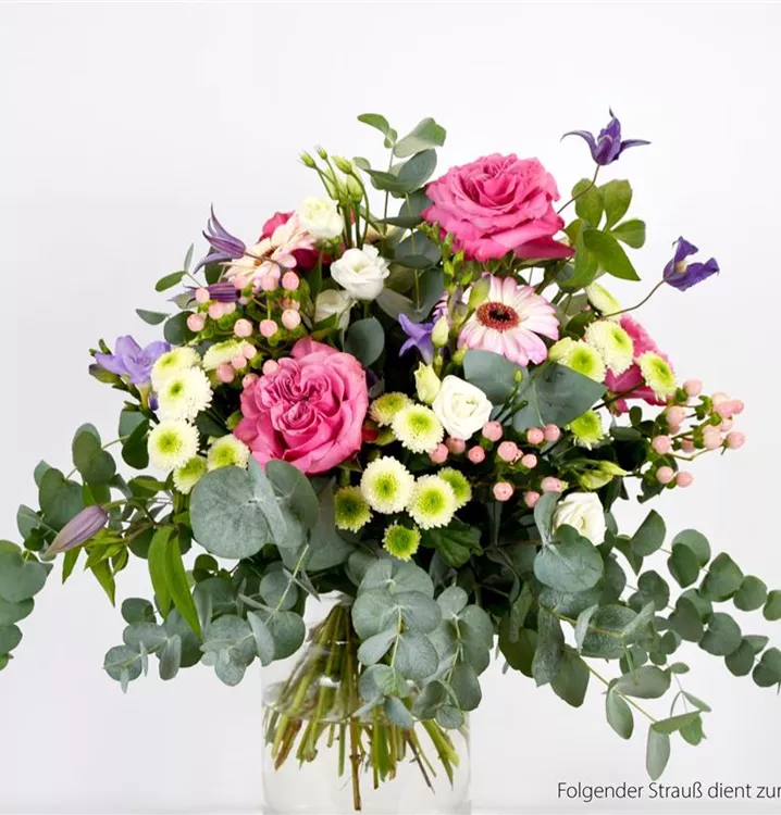 Blumen sind Naturprodukte, daher können Farbe, Form und Beschaffenheit vom hier abgebildeten Strauß abweichen. Bei nicht verfügbaren Blumen ersetzen wir diese durch gleichwertige Alternativen. Gerne können Sie uns vorab kontaktieren, falls Sie spezielle Wünsche haben.