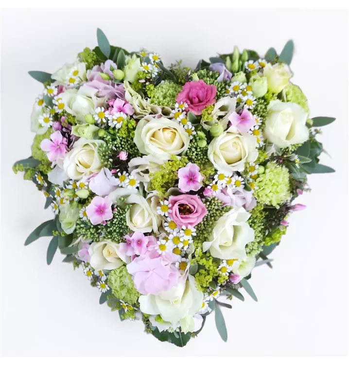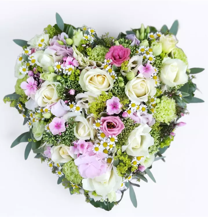 Ein liebevoll arrangiertes Herz in zarten, sanften Farben. Erhältlich in sechs Größen.