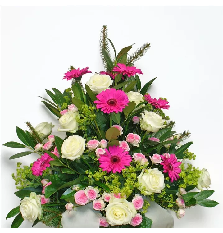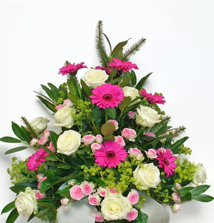 Auf Wunsch können Sie eine personalisierte Schleife hinzufügen. Diese ist als separater Artikel erhältlich. Die Schleife wird in einer Farbe gewählt, die harmonisch zum Trauergesteck passt, Ihr Wunschtext wird in schwarzer Farbe in der eleganten Schriftart Times New Roman aufgedruckt.