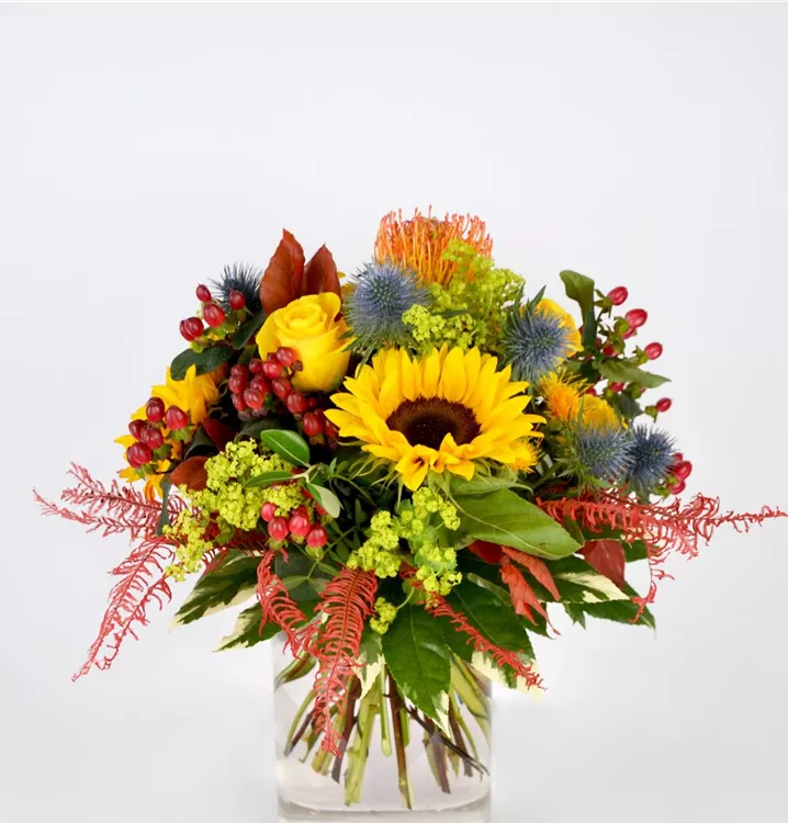 Blumen sind Naturprodukte, daher können Farbe, Form und Beschaffenheit vom hier abgebildeten Strauß abweichen. Bei nicht verfügbaren Blumen ersetzen wir diese durch gleichwertige Alternativen. Gerne können Sie uns vorab kontaktieren, falls Sie spezielle Wünsche haben.