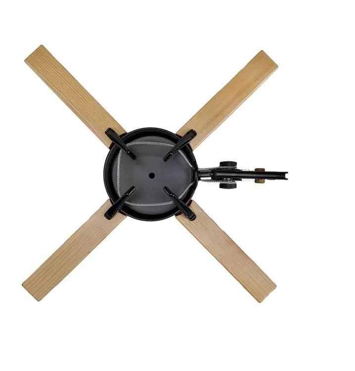 Mit Rundum-Einseil-Technik, Fußpedal für geraden Stand und Bewässerungsmöglichkeit (begrenzt).