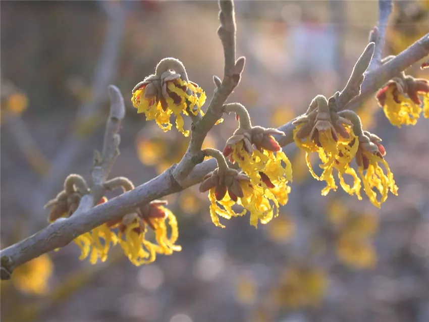 Hamamelis x intermedia 'Arnold Promise' Wenn der Sommer zu Ende geht und der Herbst angekommen ist, wird es im Garten ja ohnehin schon bunt. Aber nicht nur die Laubgehölze färben ihre Blätter in Gelb, Orange und Rot, auch im Blumenbeet zeigt sich die ein oder andere Herbstfarbe und verlängert den Sommer. Die Goldaster zeigt ihre goldgelben Blüten bis in den Oktober hinein und wird begleitet von einer Sonnenblume im Kleinformat: der Stauden-Sonnenblume. Die blüht fast genauso, wie ihre große Schwester, ist aber wesentlich kleiner. Im Halbschatten sorgt das Ochsenauge für Akzente in Gelb und hellt so auch schattige Bereiche im Garten auf. Orange Akzente setzt die Lampionblume, die im Herbst ihre kleinen orangenen Lampions zeigt und damit den Garten schmückt. Wenn sich das Jahr dem Ende neigt, sorgt die Zaubernuss mit ihren gelben oder orangenen Blüten für farbliche Akzente im tristen und grauen Wintergarten.