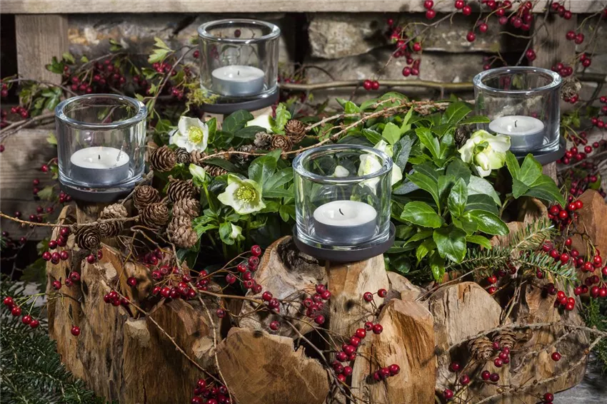 Helleborus niger Zahlreiche Materialien zum Gestalten können im Herbst in der freien Natur oder im Garten gesammelt werden, wie Hagebutten, Samenkapseln, Zapfen, Zieräpfel, Nüsse, Ranken der Waldrebe mit wolligem Samenstand, und vieles andere mehr. Für den typischen Tischkranz kann zum Verzieren auch Streudekoration zum Einsatz kommen. Die mit einer Heißklebepistole oder Draht befestigt oder einfach nur lose aufgelegt werden kann.