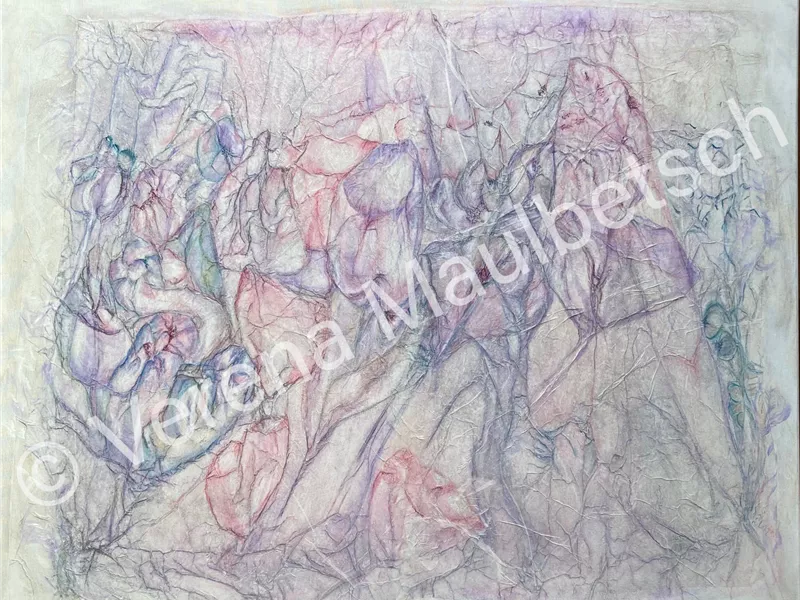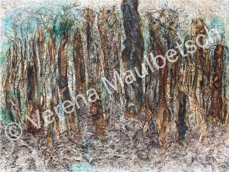 Verena Maulbetsch arbeitet in ihrem Atelier in Rheinfelden vorwiegend auf Leinwand und entwickelt ihre Werke experimentell mit Gouachefarben, Pigmenten, unterschiedlichen Naturmaterialien und Papier. Ihr künstlerischer Weg führte sie über das Aktzeichnen und die Ausdrucksmalerei bis hin zu Kursen und Studien in Deutschland und den USA.