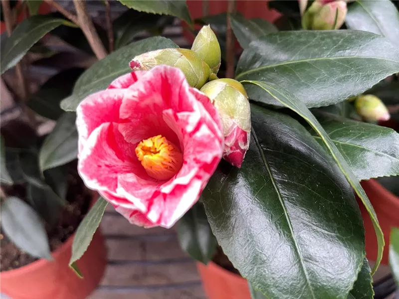Wenn Sie sich jetzt Ihre Kamelie aussuchen, erleben Sie etwas Besonderes: Sie sind live dabei, wenn sich Blüte für Blüte öffnet und Ihre Pflanze in voller Pracht erblüht. Mit steigenden Temperaturen öffnen sich immer mehr Knospen und zeigen ihre ganze Schönheit, von reinem Weiß über zartes Creme und sanftes Rosa bis hin zu leuchtendem Pink und tiefem Rot. Besonders reizvoll sind die zweifarbigen Sorten mit kontrastierenden Rändern oder die panaschierten Varianten mit ihrer malerischen Musterung.