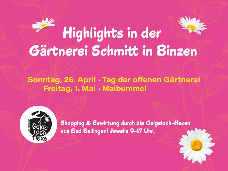 Freuen Sie sich an beiden Tagen auf eine große Auswahl an blühenden Pflanzen, frische Ideen für Ihren Garten oder Balkon und jede Menge Frühlingsgefühle. Schlendern Sie durch unsere Gärtnerei, entdecken Sie Neues und genießen Sie entspannte Stunden im Grünen.